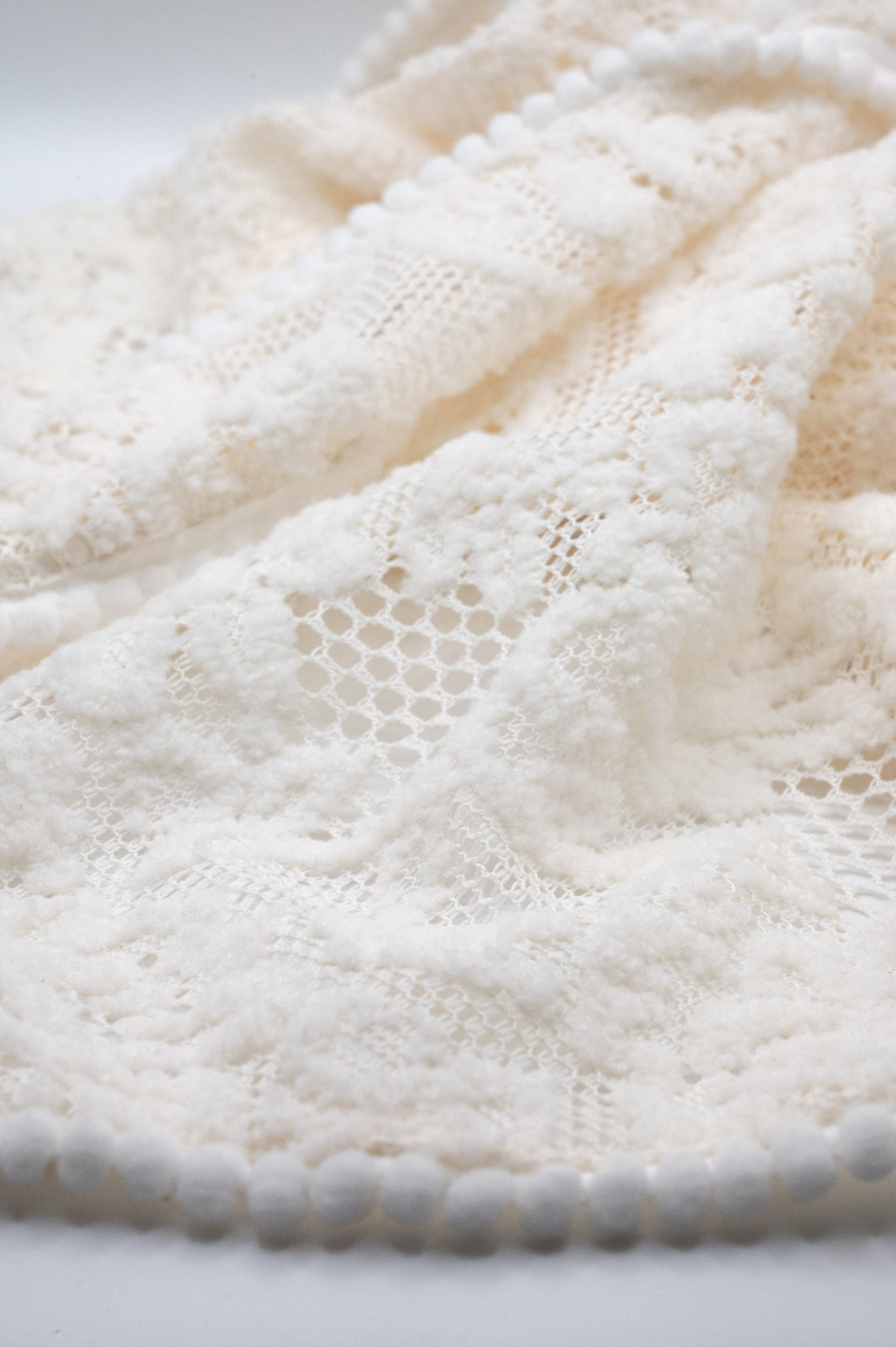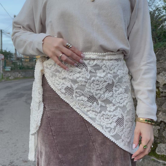 El Pañuelo Flor de Invierno está confeccionado artesanalmente a mano, cuidando cada detalle del tejido y del acabado. Sus tonalidades blancas se presentan de manera uniforme, reflejando la precisión y el cuidado puestos en cada etapa de la elaboración.