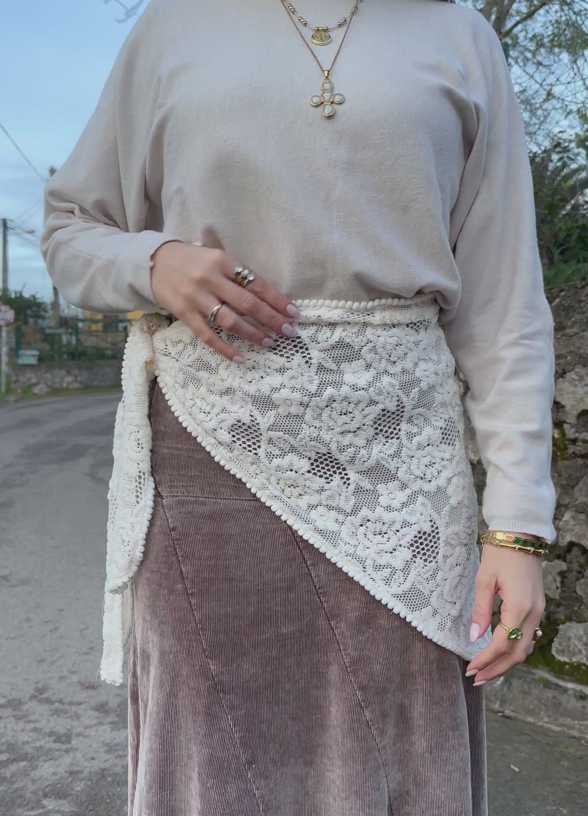 Con unas medidas de 1,50 m de ancho y 0,50 m de largo, el pañuelo ofrece una caída equilibrada y un manejo versátil. La confección manual garantiza un acabado pulido, un tacto suave y variaciones sutiles propias del trabajo artesanal, que aportan carácter y singularidad a cada pieza.